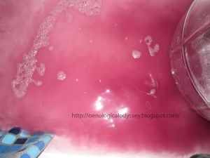 Annoyingly, yeast corpses and bubbles still persisted. Another racking and stirring was in order. So I reenacted the bathroom scene in Pyscho…
