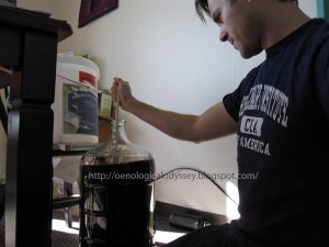 Now the step of clearing the wine lay before me. Last week had let the remnant CO2 bubble away. Windows had been cracked and the sun blocked, freezing my wife, but keeping the wine from jumping into a bacterial outbreak of disaster movie proportions.