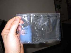 With my wine preserved for all time, I switched gears to the fining process. Within mystery packet #5 (what happened to #3 and #4 by the by?) was Kieselsol: a negatively charged silica gel. With the Kieselsol mixed in, I waited a half hour for it to go about negatively charging the yeast cells.