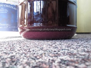 Inches of grape must and dead yeast now lay at the bottom of the carboy. Tasty. They needed a proper burial, so I re-racked the wine, halting just before I sucked up the purple elmer’s glue (melted mcdonald’s grimace?) at the bottom.