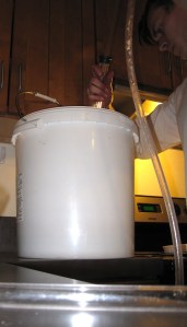 Finally unbound from my mast, I need to separate juice from skins. Easy! I take my siphoning tube and pump. And pump. And…damnit! Nothing. The end is jammed.