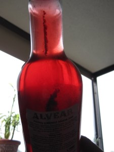 With three regular bottles (750ml) and three splits (375ml) brimming with blueberry, we taste what wine is left.The color is of mild intensity, ruby with a slight haziness. The nose has light intensity of tart cherry, apple, clay and some sulfur. On the palate it is dry, with medium to high acidity, light tannin, light body, short length. Flavors of green and red apple (malic acid), wild strawberry, kiwi and a touch of sulfur slide by the palate in one note.