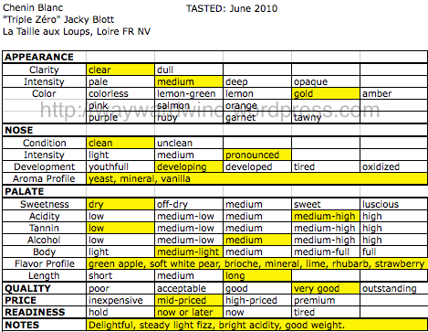 It was visually clear, steely gold. The nose intense with yeast, mineral, vanilla. Dry. The acidity was moderately high, typical of Loire chenin blanc. The body was medium light. The palate carried green apple, soft white pear, brioche, mineral, lime, while strawberry and rhubarb squeaked in. Great drink, fresh, focused yet complex.