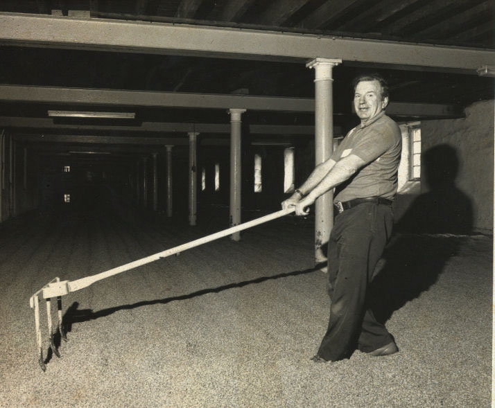 We look through the web-clattered windows. One reveals the two century old kiln for roasting and heating the malting floor.