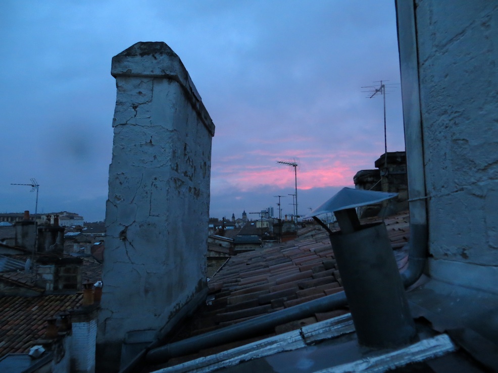 The next few Monday posts will explore Bordeaux and its vines in depth. For now, we feel horribly sick, and will have to suffer sober through the unsurprisingly gorgeous sunset from our rooftop home stay.
