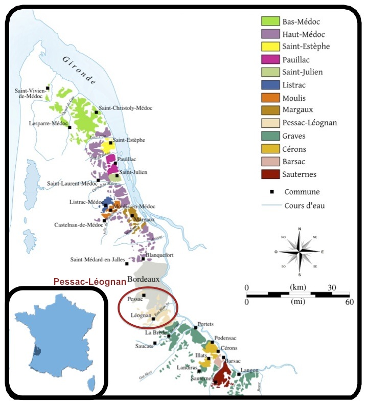 medoc-map-2010In 1855 Bordeaux merchants ranked the top houses.  Of the Premier Grand Cru (best of the best), all were in the Médoc save one in Pessac-Léognan.  Now we could debate the validity of an 159 year-old classification, but Pessac was just a bus ride from our apartment.