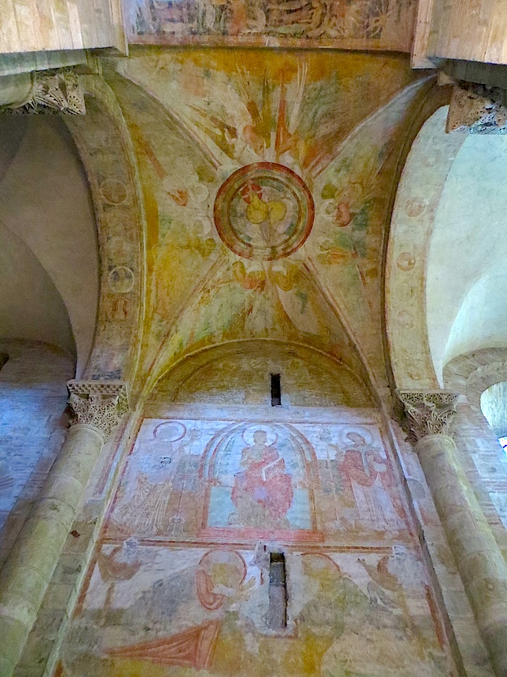 This is Europe’s largest Romanesque church.  Bright, stiff frescoes still cling to its forest of vaults.