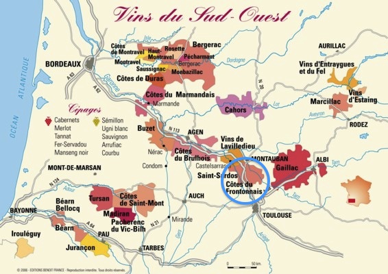 Just north of Toulouse sits the Gaillac AOC:GaillacMapFor 9.50 EU we grab Château de Salettes’ 2009 Gaillac Rouge.