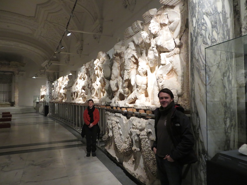 Taken from Turkey over a hundred years ago, its marble frieze depicts scenes of slaughter, sacrifice, and succession with Hadrian hugging a preteen Marcus Aurelius: