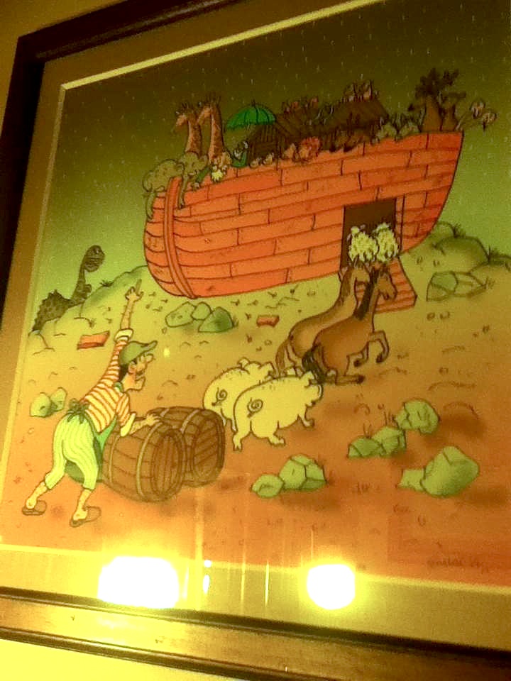 Just as we plan to pack up our ark (cute signs like this line the walls), we try their Weiss Bock: