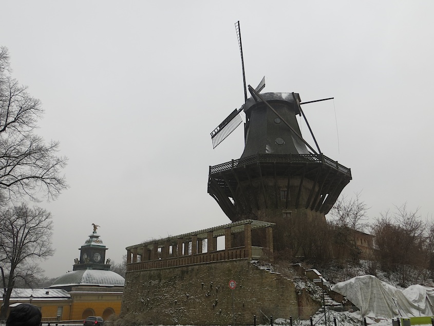 And the reason for this? 18th century oligarch Frederick the Great. We hike through slush to his “summer” palace: Schloss Sanssouci, which, of course, has its own grain mill: