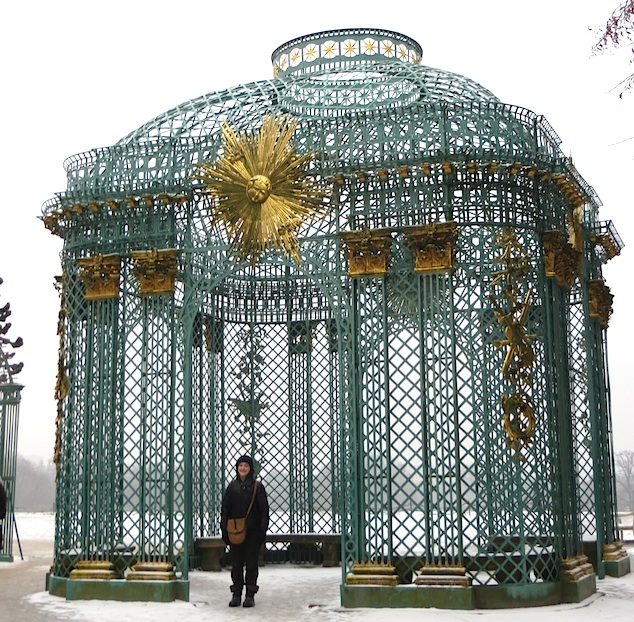 We slosh through slushy grounds, imagining lush, German summers here. And then we find a surreal orientalist pagoda, packed with confused, racist stereotypes about China…probably: