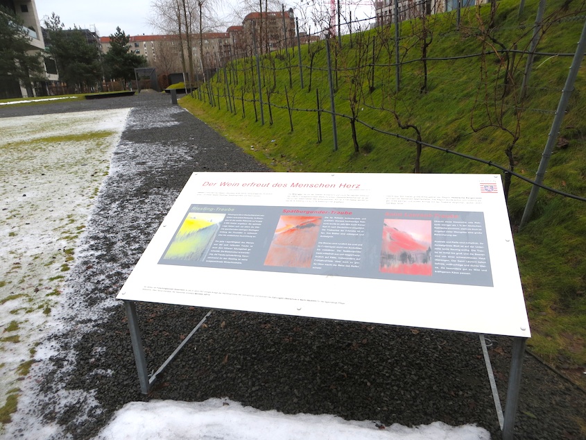Berlin Jewish MemorialThen, at random, we find Hitler’s bunker.  A mere grass mound betwixt office buildings.  But things get weirder (or more appropriate).  It now features a vineyard:
