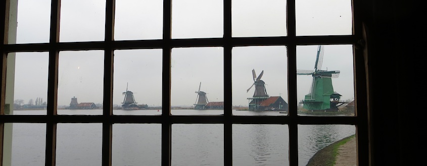 After Amsterdam and its bicycle, canal packed turmoil (see last post here), we require a direct injection of Dutch kitsch. So we day trip to Zaanse Schans: one of Europe’s oldest industrial centers: aka the Disneyland of Windmills, wooden shoes, tulips, and cheese.