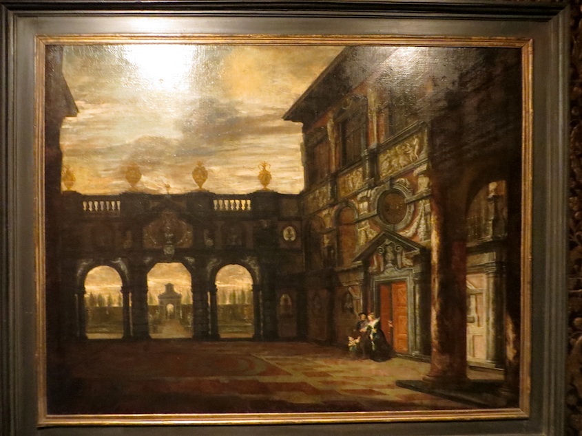 Then a narrow hall faces out into Ruben’s best attempt at an Italian Renaissance Courtyard, which he also painted.