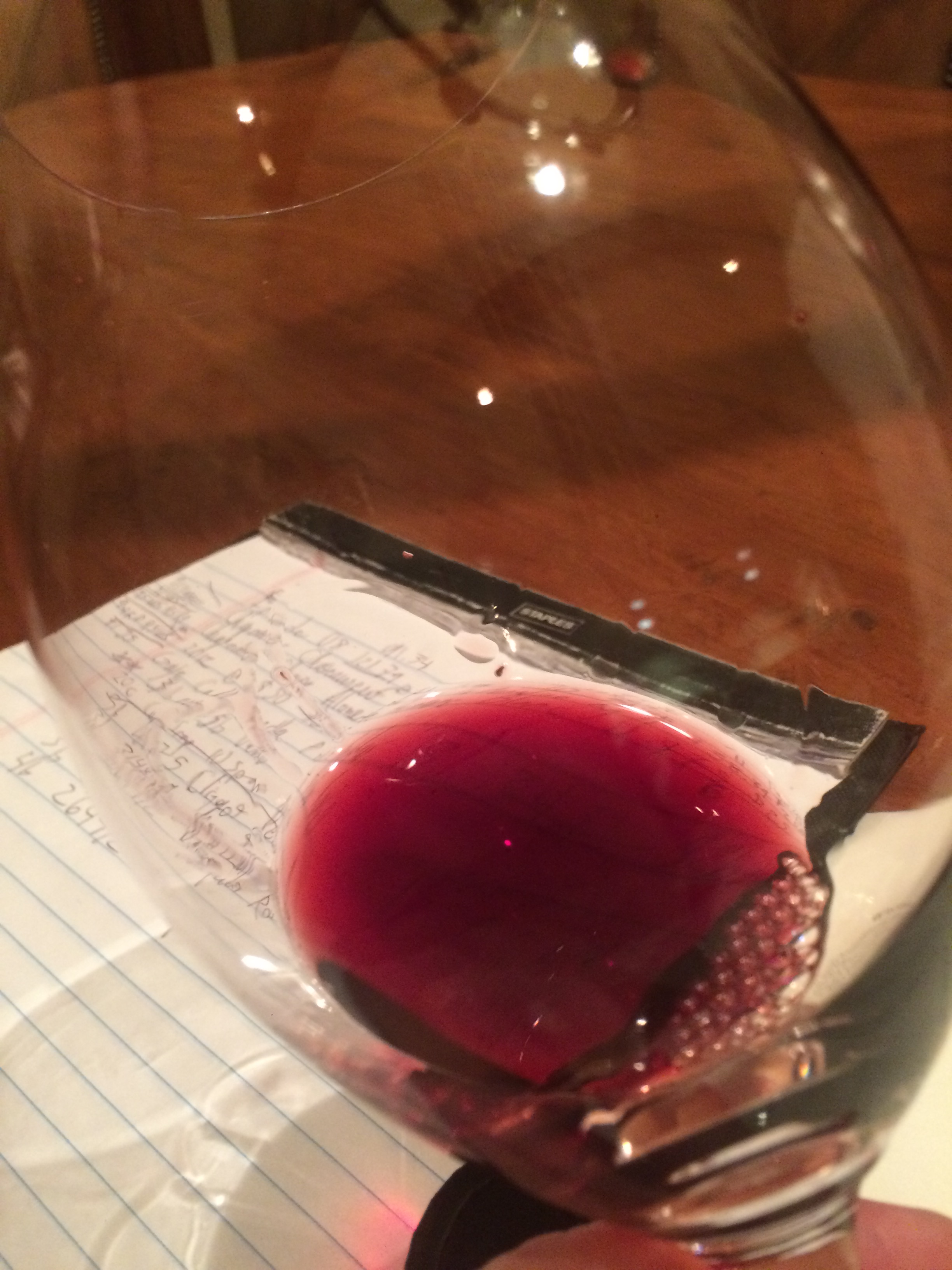 Also 2011, also cab, and also by Ted, Bosché looks a deeper purple with ruby tinges. Clay kicks through into the aroma with paper machée, slight grilled meat, olive tapenade, and orange peel. Where’s the fruit? Again acidity is high, but big dusty, particulate tannin is king. Flavors match in minerality, mint, a wee bit of bell pepper, and blackberry leather. Bosché 2011 is a dusty, grippy, edgy wine that would benefit from a savory, salty pairing, very good (4 of 5) but serious stuff.