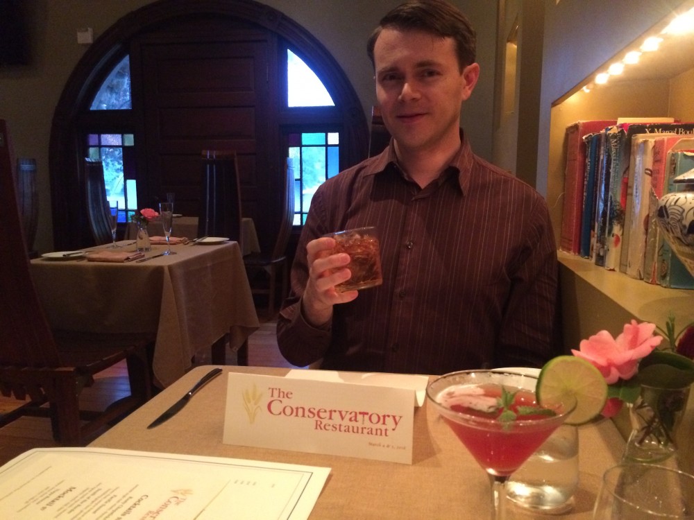 Only those East Coast chefs get to work at Greystone’s Conservatory Restaurant. Here they learn to create menus based solely on seasonal, farm to table, options. We sit for seven, fixed courses with wine pairings. But, happy with wine today (and the list is mainly Sonoma-based), we opt for cocktails.