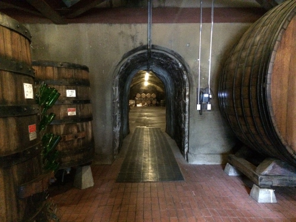 Outside, after checking out decorative vines flaunting downy budbreak, we enter the original 1876 winery: all stone and simple arches like a Romanesque wall. Inside, we find a winery like any in Europe dating back to the 1400s.