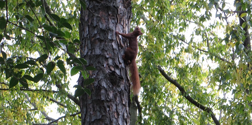 On our way back to modernity, we sight a mythic red squirrel of destiny (we had read of these, and for the last 121 days hunted Europe but never saw them).